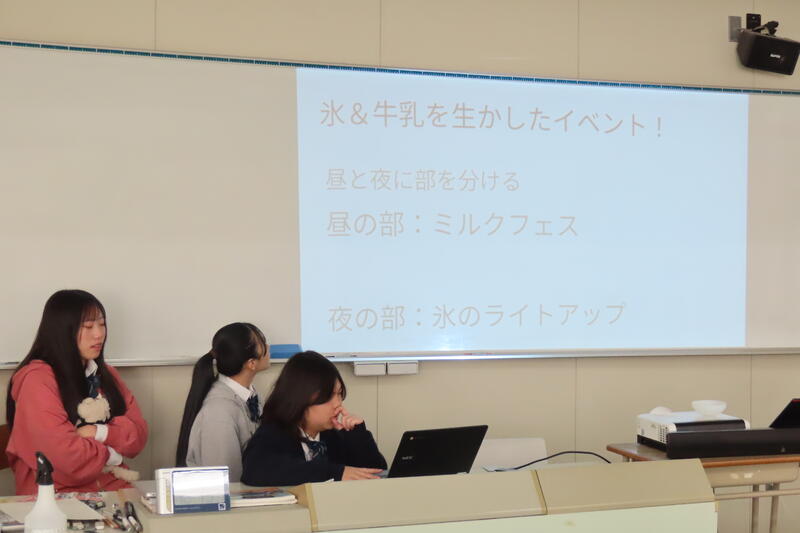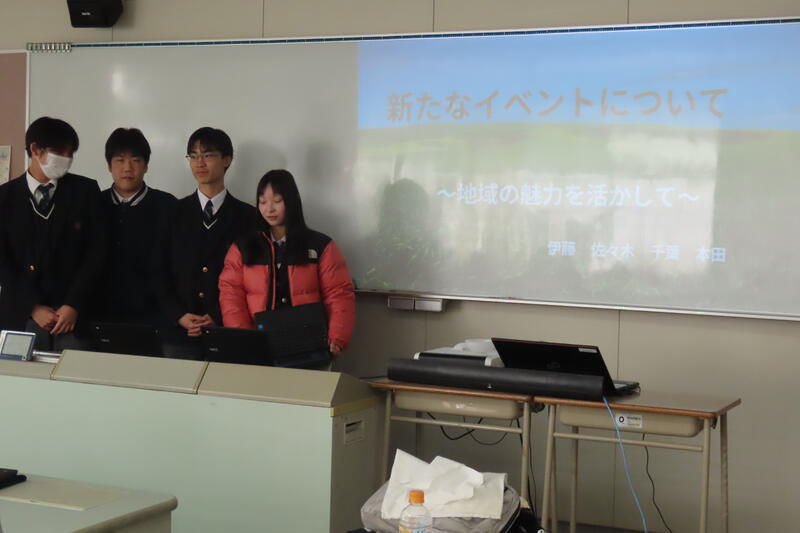 異文化理解Aの授業では『標茶町に新しいイベントを提案しよう』という内容で、標茶町役場に提案すると仮定して発表を行いました。