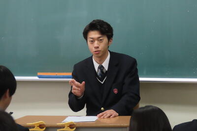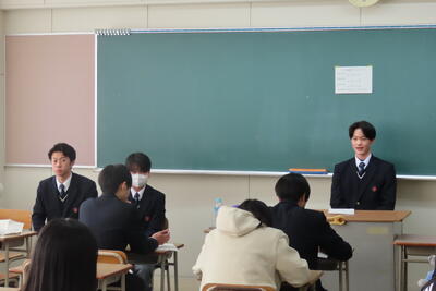本日は、3年次生による進路講話をおこないました。進路実現した3年次生が大学(文系)・大学(理系)・医療系・専門学校・就職ごとに、1・2年次生に体験談や反省点などを伝えていました。2年次生のこの時期は、3年生の0学期と言われています。進路実現に向けて頑張ってください!!